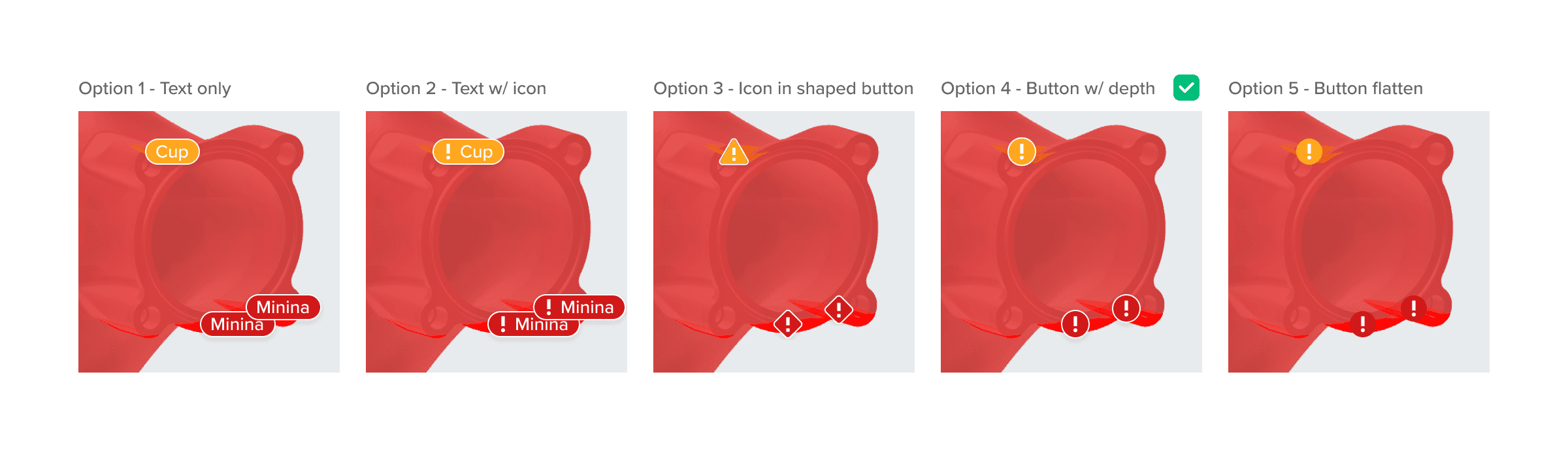 To fix this, I added a new idle state to pins when they are only at half opacity. When user hovers on the error in the list, the pin changes to active state; when user hovers on the locate button, the pin changes to hover state; after user presses the locate button, the pin flashes to remind user again which error area has been focused on.